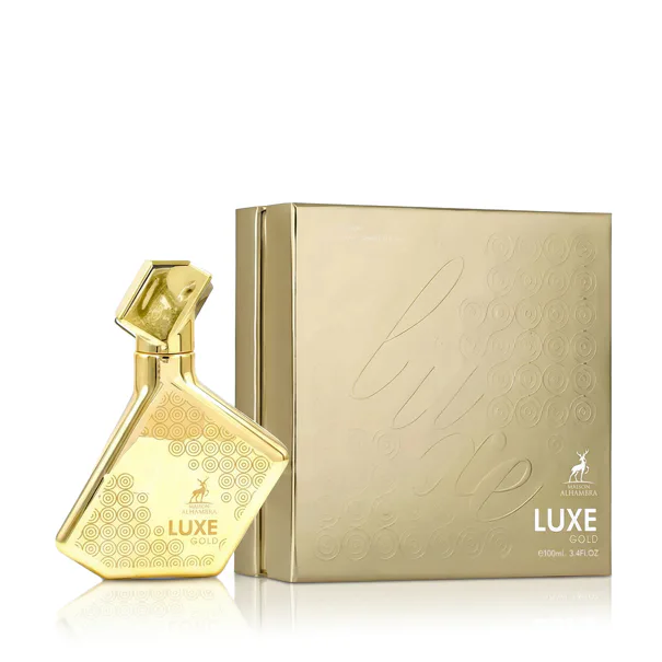 Luxe Gold by Maison Alhambra je nový unisex parfém z orientálně-dřevité vonné rodiny, uvedený na trh v roce 2025. Tato elegantní a minimalisticky pojatá vůně staví na kontrastech mezi květinovou jemností a dřevitou hloubkou, čímž vytváří kompozici s orientálním charakterem a moderním vyzněním. V úvodu parfému dominuje sametově hebká a zároveň výrazná růže, která vůni dodává noblesní, lehce romantický nádech.