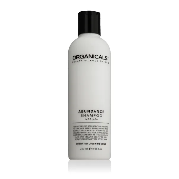 Organicals® ABUNDANCE Moringa Restructuring Shampoo – restrukturalizační šampon s moringou o objemu 250 ml je šetrně čisticí přípravek určený pro oslabené, suché a poškozené vlasy, které potřebují obnovu a posílení. Obsahuje výtažek z moringy, bohatý na antioxidanty, vitamíny a esenciální mastné kyseliny, které podporují regeneraci vlasového vlákna, zlepšují elasticitu a navrací vlasům přirozený lesk a vitalitu.
