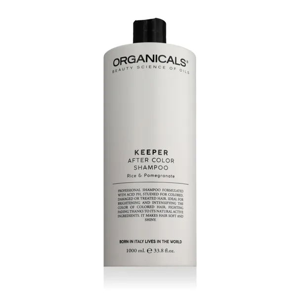 Organicals® KEEPER After Color Shampoo – šampon pro barvené vlasy ve velkém 1000ml balení je navržen pro šetrné, ale důkladné mytí chemicky ošetřených a barvených vlasů, přičemž pomáhá chránit a prodloužit intenzitu barvy. Obsahuje přírodní výtažky a hydratační složky, které zajišťují zklidnění vlasové pokožky a zároveň posilují vlasové vlákno. Vhodný pro každodenní použití.