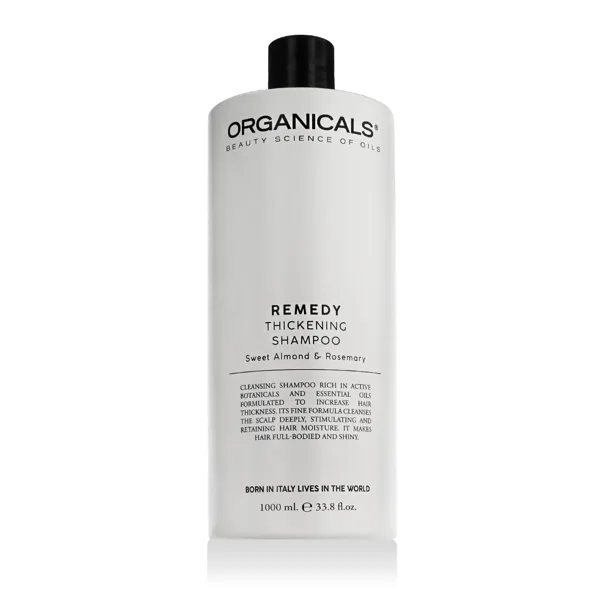 Organicals® REMEDY Thickening Shampoo – zahušťující šampon pro jemné a oslabené vlasy v praktickém 1000ml balení je navržen tak, aby vlasům dodal viditelný objem, hustotu a pevnost. Obsahuje aktivní rostlinné složky, které posilují vlasová vlákna, stimulují vlasové kořínky a podporují zdravý růst vlasů. Je ideální pro vlasy, které postrádají plnost, sílu nebo trpí řídnutím.