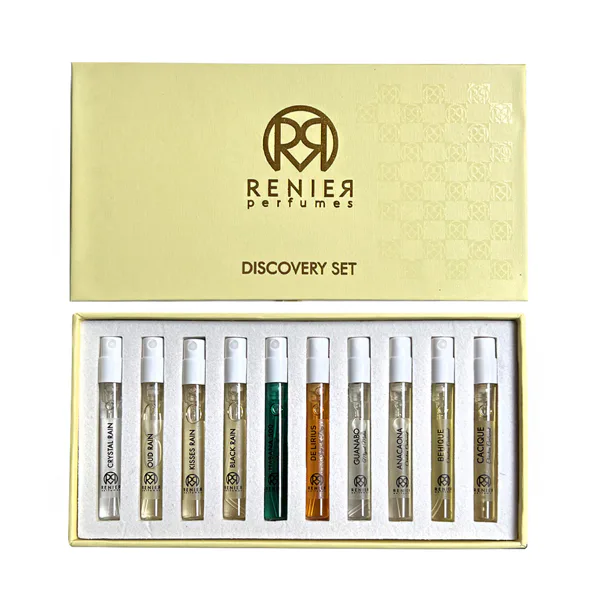 Renier Perfumes MINI Discovery Set je exkluzivní sada 20 miniatur unisex vůní o objemu 2 ml, která nabízí jedinečnou možnost poznat celou duši této nezávislé niche značky. V kolekci najdete jak Extrait de Parfum, tak toaletní vody (EDP), které ztělesňují různé aspekty umělecké a emocionální tvorby Reniera R. Méndeze. Set je ideální nejen pro parfumové nadšence, ale i pro ty, kteří rádi objevují nové olfaktorické světy bez nutnosti pořizovat plné flakony.