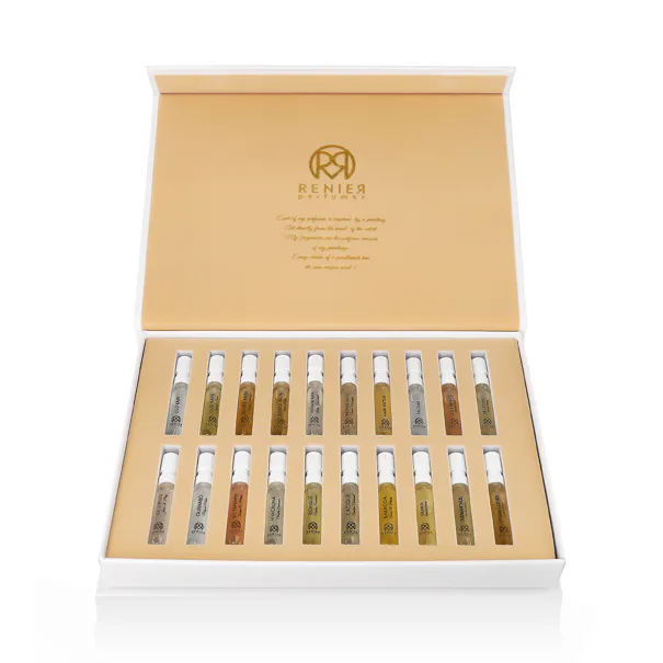 Renier Perfumes MINI Discovery Set je exkluzivní sada 20 miniatur unisex vůní o objemu 2 ml, která nabízí jedinečnou možnost poznat celou duši této nezávislé niche značky. V kolekci najdete jak Extrait de Parfum, tak toaletní vody (EDP), které ztělesňují různé aspekty umělecké a emocionální tvorby Reniera R. Méndeze. Set je ideální nejen pro parfumové nadšence, ale i pro ty, kteří rádi objevují nové olfaktorické světy bez nutnosti pořizovat plné flakony.