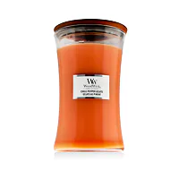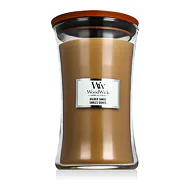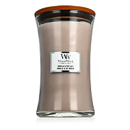 WoodWick Large Hourglass Candles vonná svíčka Sagewood & Seagrass 609,5 g je luxusní svíčka ve tvaru přesýpacích hodin, která kombinuje svěží bylinné tóny šalvěje s jemnými akordy mořské trávy. Tato přírodní a osvěžující vůně přináší klidnou atmosféru připomínající procházky podél mořského pobřeží. Díky jedinečnému patentovanému dřevěnému knotu nabízí autentický zvuk praskajícího dřeva, který navozuje pocit pohodlí a relaxace.